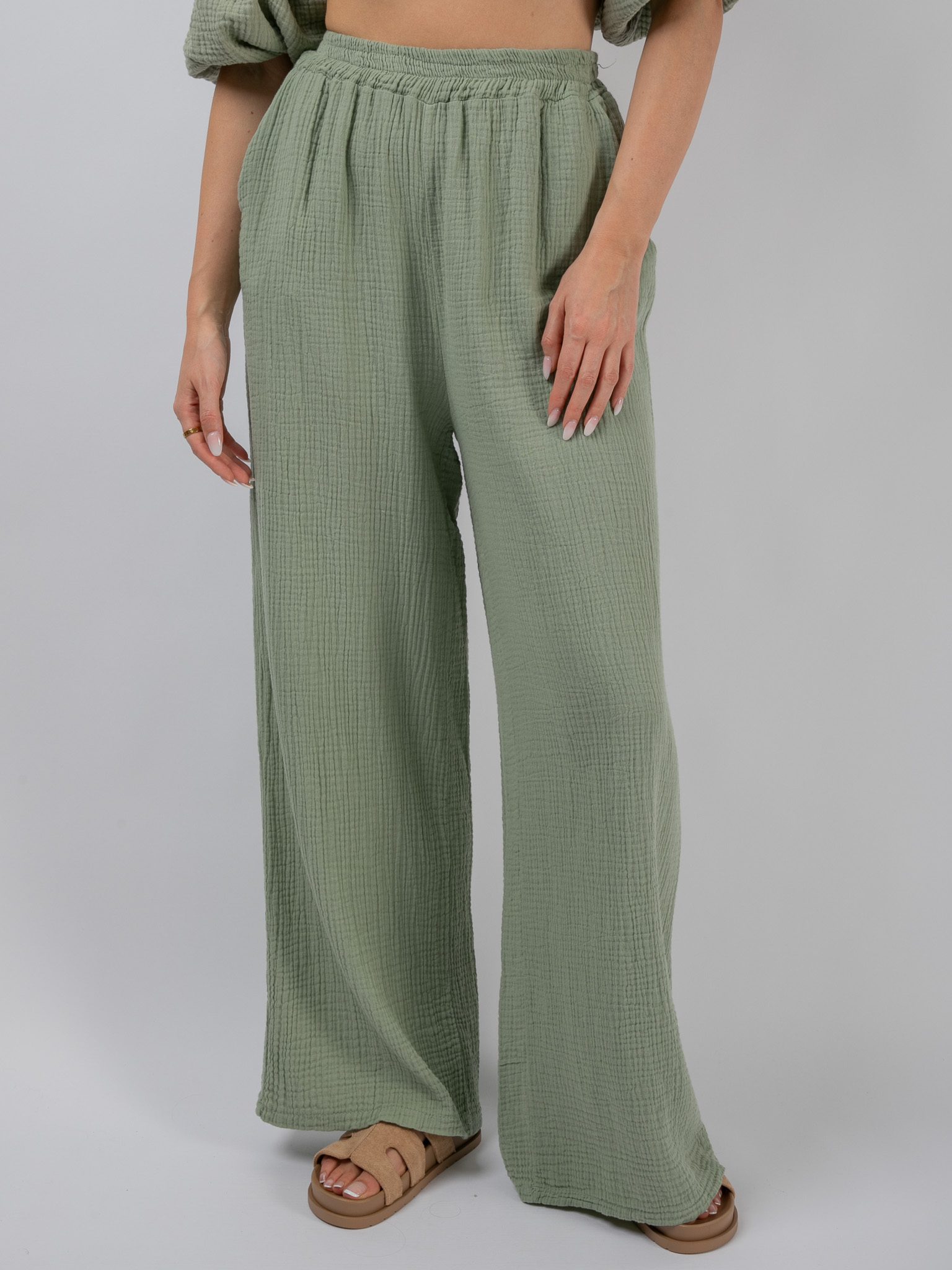 Musselin-Hose „Wanny“ in Pistazie
